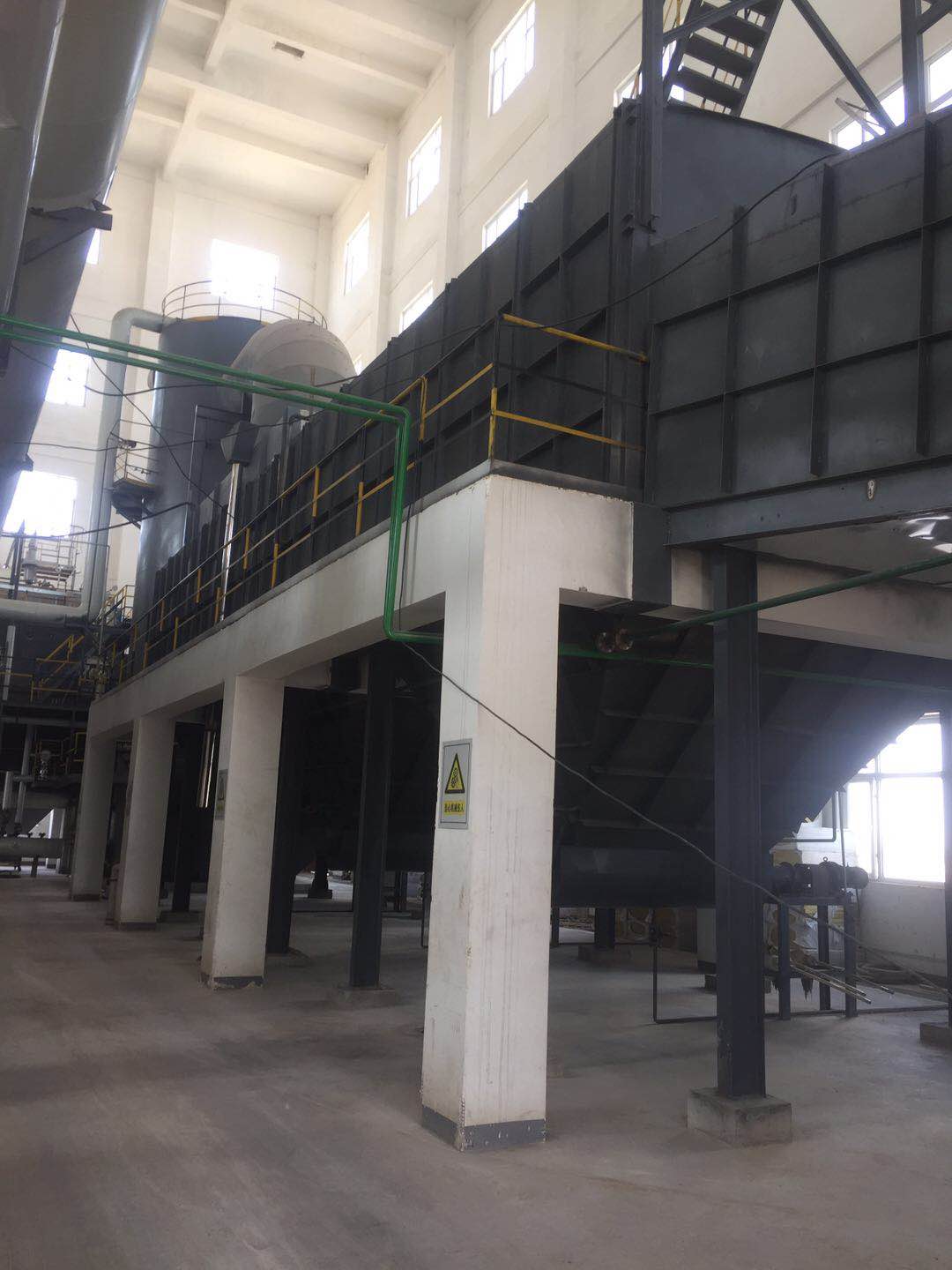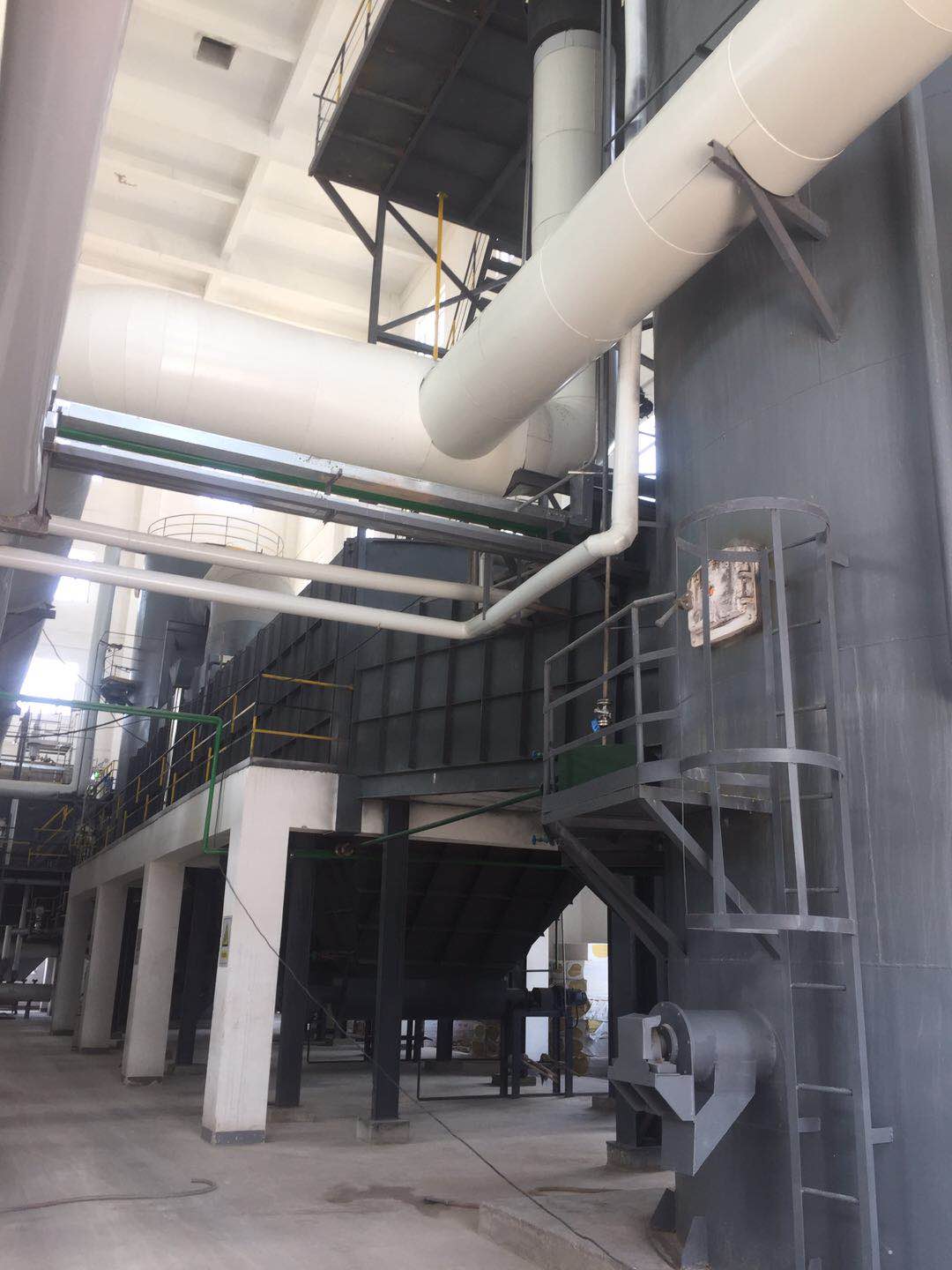 經(jīng)過預(yù)處理的廢液、固廢或廢氣由進料裝置進入一次燃燒室,廢料與助燃空氣在焚燒爐爐膛內(nèi)經(jīng)過復(fù)雜的物理、化學(xué)反應(yīng),使廢料中的有害物質(zhì)徹底分解,焚燒溫度控制在750-800℃(不同的物料焚燒溫度不同);產(chǎn)生的煙道氣進入迷宮沉降除塵器除鹽(底部自動出鹽),然后進入二級燃燒室進行高溫焚燒,二級燃燒室內(nèi)焚燒溫度控制在1100℃左右,產(chǎn)生的高溫煙道氣經(jīng)SNCR脫硝后,進入余熱回收裝置,高溫煙道氣的部分熱量轉(zhuǎn)化為蒸汽回收,煙氣溫度降至550℃左右,之后進入G-G換熱器與煙氣再加熱器1的熱側(cè),為補燃空氣預(yù)熱和將布袋除塵器出來的煙氣再次升溫至脫硝所需溫度,同時煙氣降溫至500℃左右,(根據(jù)國標要求:為避免二噁英的再次合成,煙氣要在1S內(nèi)從500℃左右降至200℃以下),煙氣進入半干急冷塔降溫至200℃以下,經(jīng)布袋除塵后,煙氣經(jīng)煙氣再加熱器1加熱升溫至350℃左右,通過SCR脫硝,進入煙氣再加熱器2熱側(cè)作為熱源加熱汽水分離后的煙道氣,之后進入噴淋吸收塔脫除酸性氣體,且再次降溫至75℃左右,進入汽水分離器脫水后,經(jīng)過煙氣再加熱器2的冷側(cè)被加熱至120℃左右經(jīng)煙囪外排。